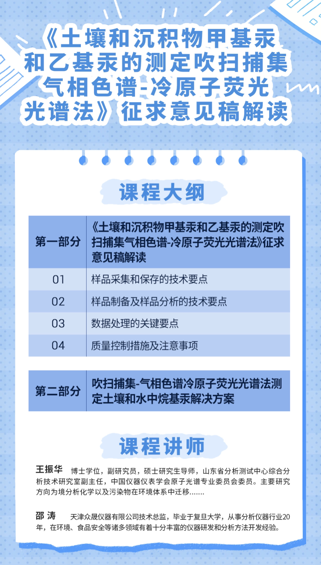 查看詳情 +《土壤和沉積物 甲基汞和乙基汞的測(cè)定 吹掃捕集/氣相色譜-冷原子熒光光譜法》標(biāo)準(zhǔn)征求意見(jiàn)稿解讀,技術(shù)交流會(huì)
